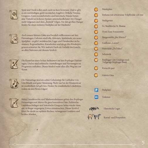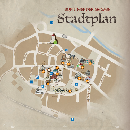 Auf den folgenden Bildern sehen sie die Bopfinger Innenstadt zu den Heimattagen! Anhand der Symbole, die ebenfalls erläutert werden finden sie ganz leicht ihr Ziel.